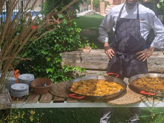 Paella tradicional con pollo, garrofón, judía verde y alcachofas. Con romero fresco.